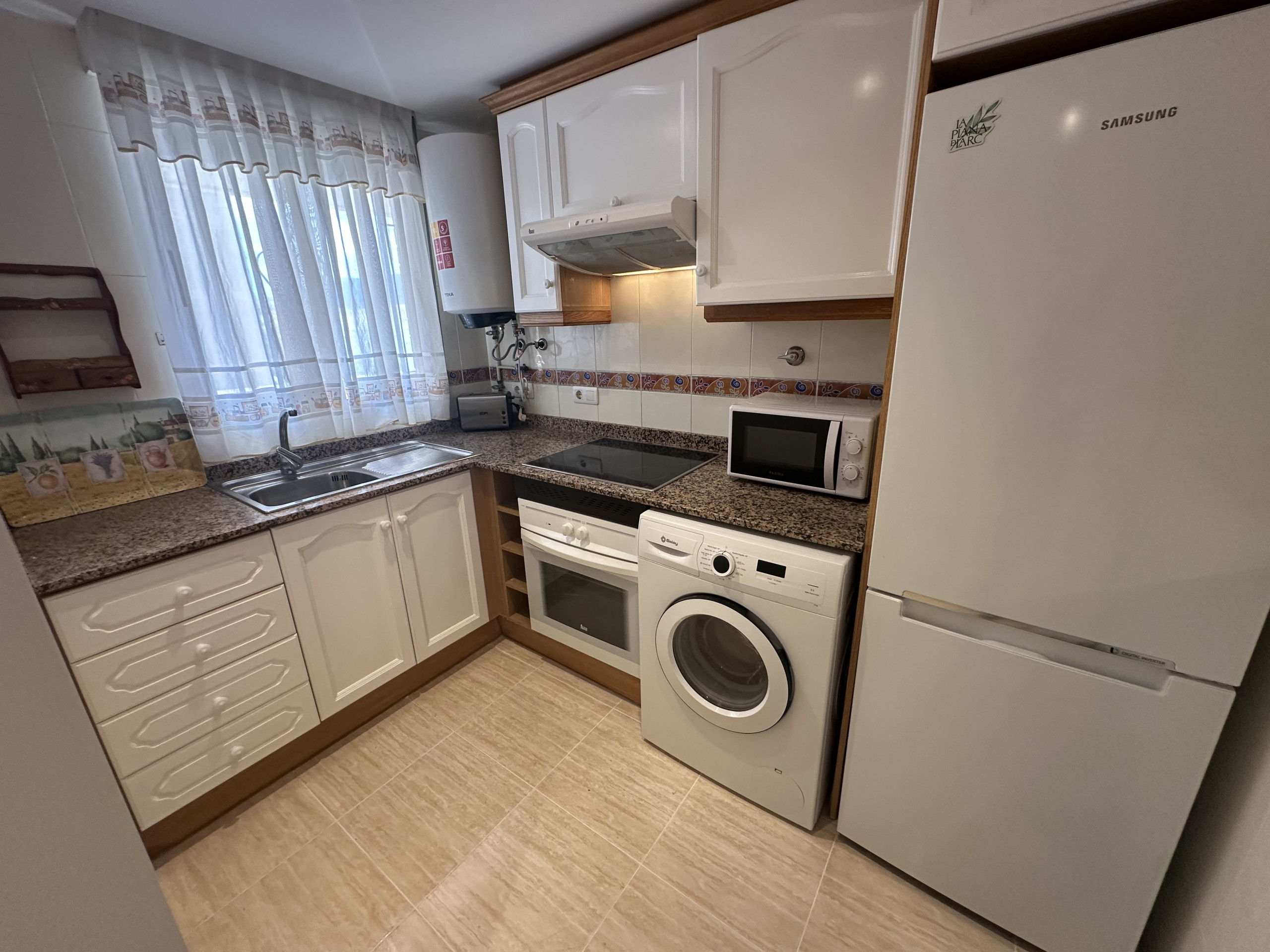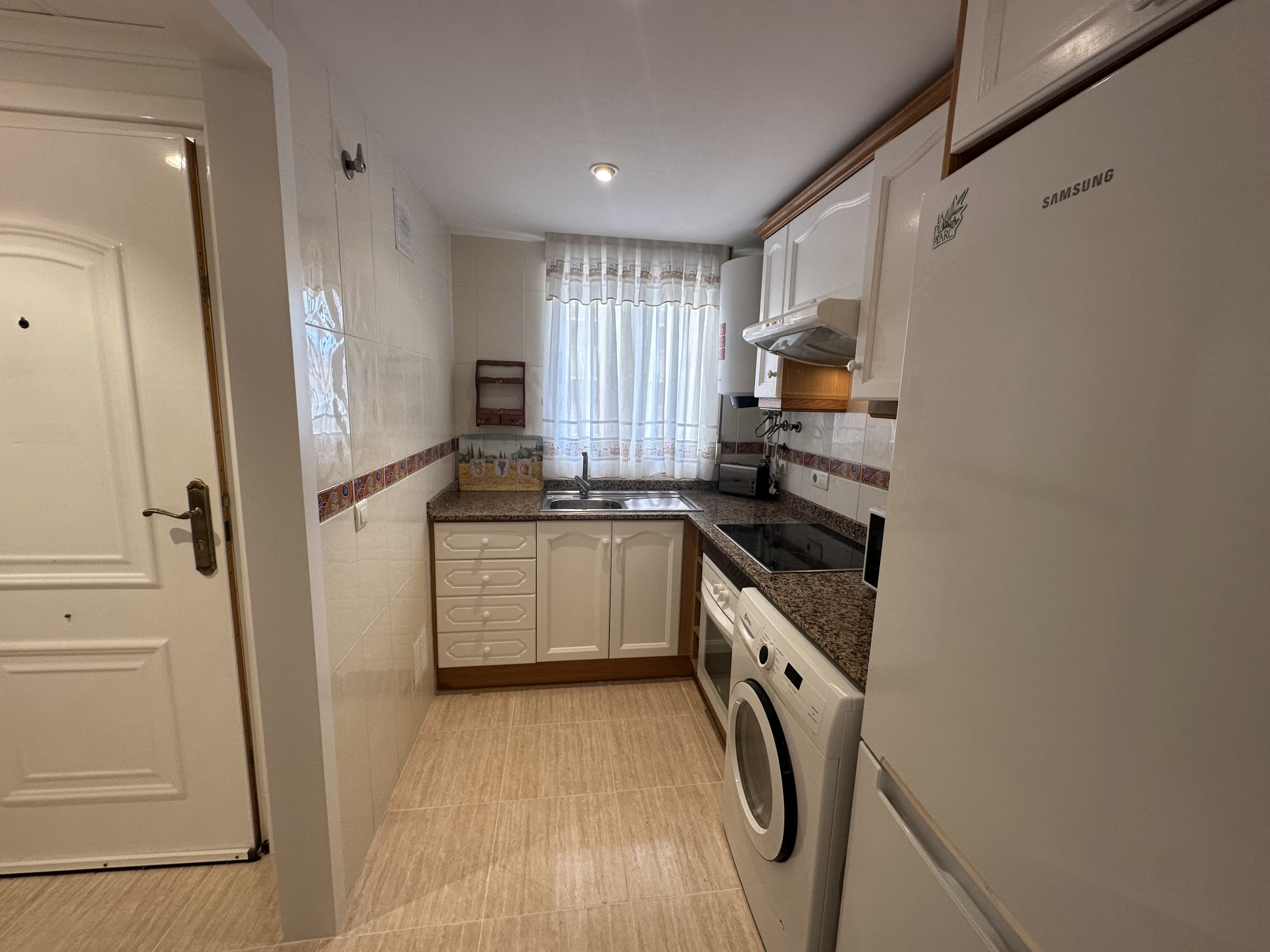 Dispone de ascensor, lavadora, calefacción bomba de calor, aire acondicionado, piscina comunitaria, garaje en mismo edificio, 1 Televisor.