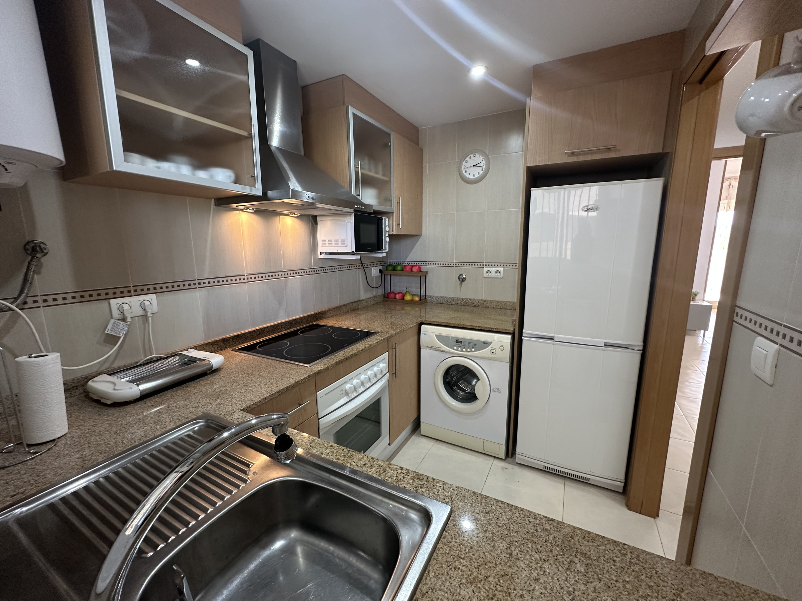 El apartamento en Oropesa del Mar tiene 2 dormitorios y tiene capacidad para 6 personas. El apartamento tiene 65 m². La propiedad está ubicada a 0 m del supermercado, a 100 m de la playa de arena de La Concha, a 2 km de Magic World city. La casa está situada en un barrio familiar junto al mar.El alojamiento está equipado con los siguientes elementos: ascensor, terraza de 9 m², lavadora, bomba de calor, aire acondicionado, 1 TV.En la cocina independiente de vitrocerámica, se proporcionan nevera, microondas, horno, congelador, platos/cubiertos, utensilios de cocina, cafetera y tostadora.